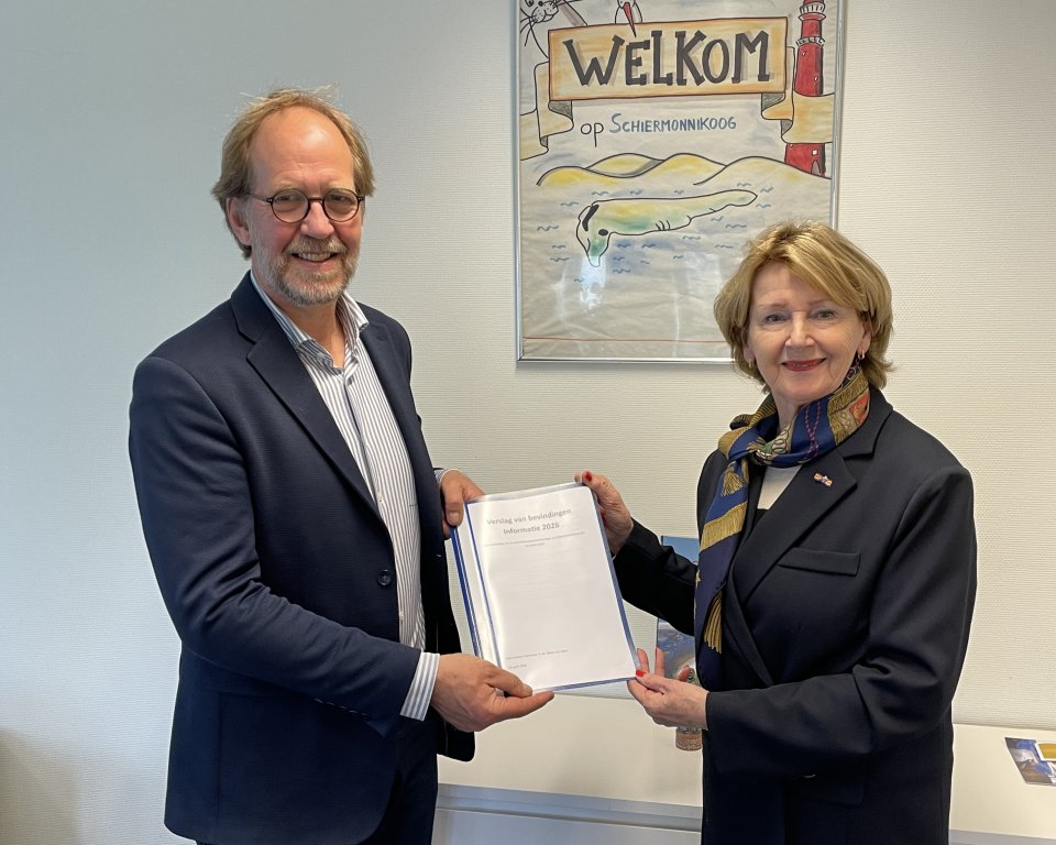 De afgelopen periode heeft zij gesprekken gevoerd met de drie partijen, de burgemeester, griffier en gemeentesecretaris. Op woensdag 15 april is de informatieronde afgerond. De informateur heeft haar bevindingen in een verslag neergelegd, toegelicht aan de drie partijen en aangeboden aan de burgemeester (zie foto). Dat verslag staat op de nieuwspagina van de gemeentelijke website. De conclusie is dat er een goede basis aanwezig is om te werken naar een raadsbreed programma, opgesteld en ondertekend door de drie partijen van Schiermonnikoog. In zo’n programma kunnen afspraken worden gemaakt over de grote lijnen: wat ons bindt is leidend.